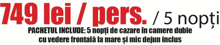 Pachetul de oferte cazare Mamaia este valabil în perioada 15.05 – 05.06.2025, conține 5 nopti de cazare în Camere Duble cu vedere la mare frontală și mic dejun inclus.